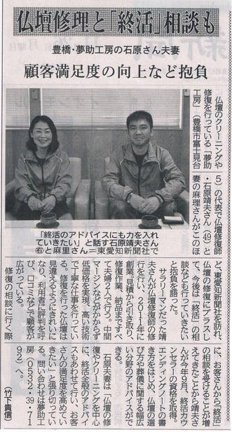 ご尽力いただきました、東愛知新聞社営業部次長 田中健一さま、ありがとうございました。